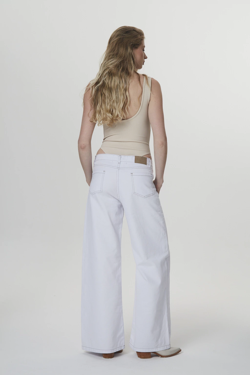 Jean wide leg blanco, confeccionado en denim 100% algodón premium, con estructura firme, tacto suave y caída natural.