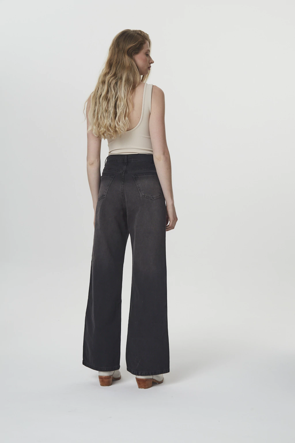 Jean wide leg negro, confeccionado en denim 100% algodón de estructura firme y tacto suave.