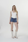 Mini short denim elastizado de tiro medio, diseñado para acompañar el movimiento y resaltar la figura sin perder comodidad.