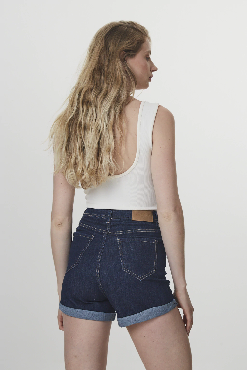 Short denim tiro alto, confeccionado en denim elastizado de alta calidad que se adapta al cuerpo con suavidad, firmeza y una excelente recuperación.