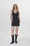 Short denim de tiro medio, confeccionado en denim negro 100% algodón con estructura firme y tacto suave.