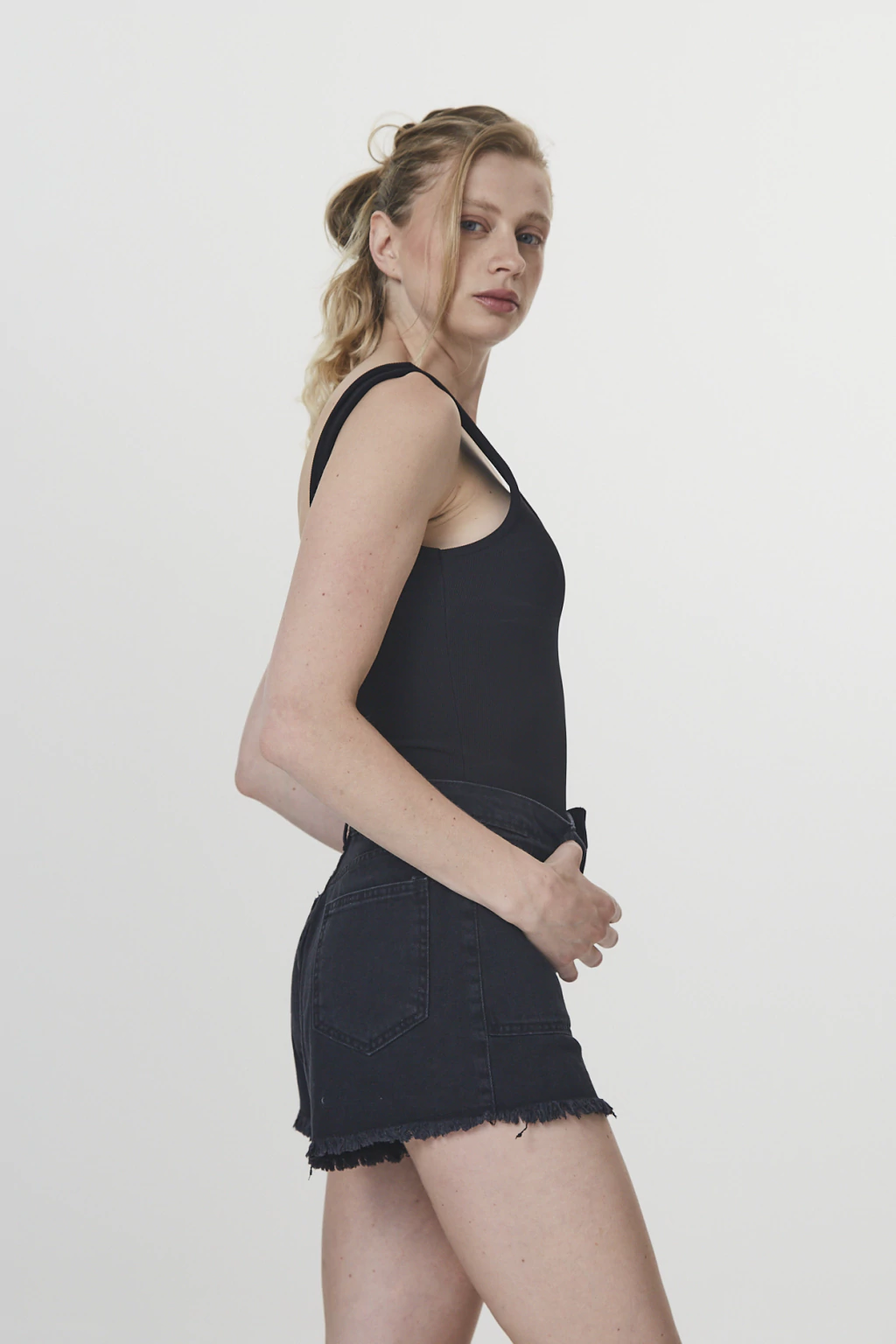 Mini short denim tiro medio, confeccionado en denim 100% algodón con estructura firme y tacto suave.